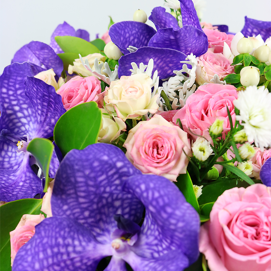 Our Violet Sky bouquet is a true masterpiece, blending vibrant shades of purple and pink to create a mesmerizing display. Each bloom is carefully arranged to highlight the bouquet’s unique design, making it a perfect centerpiece for any occasion.